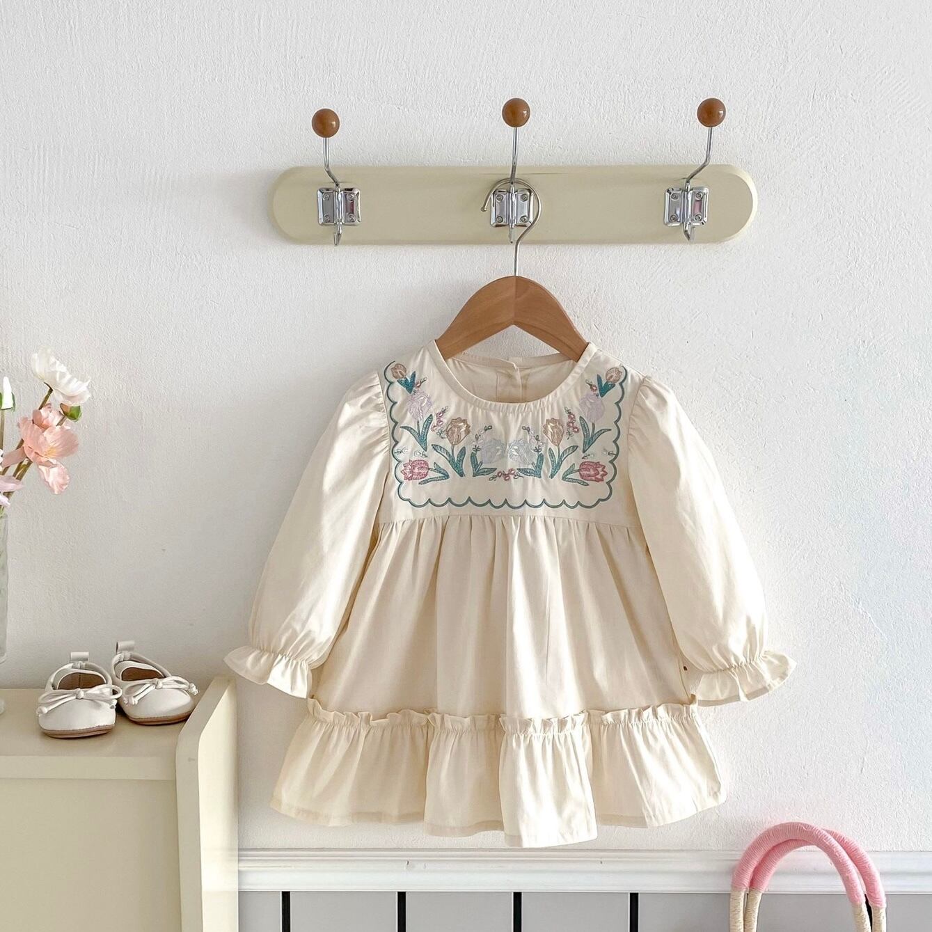 柔らかな雰囲気のチューリップの刺繍が可愛い春のお出かけにぴったりなワンピースです♡