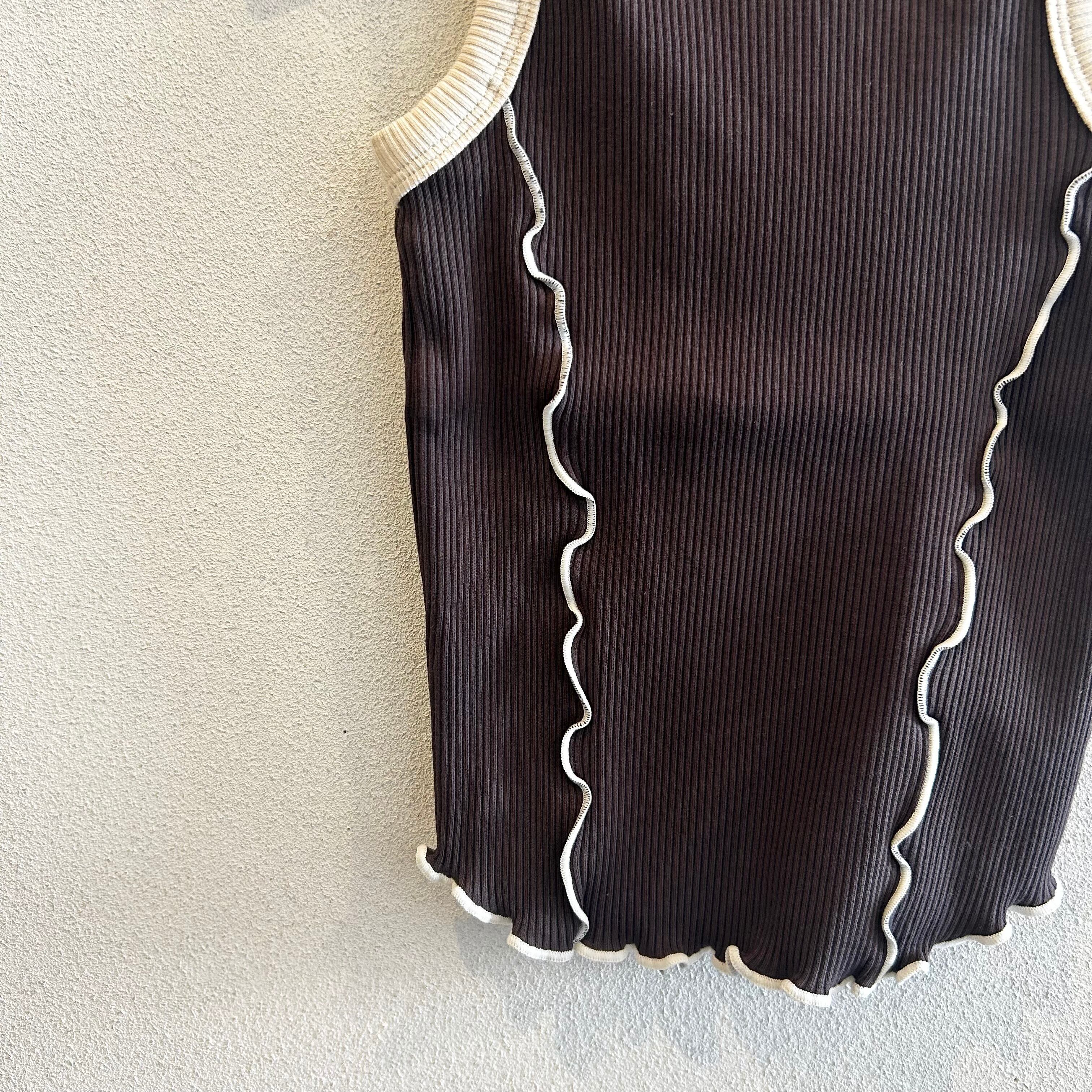 配色のおしゃれなメローリブタンクトップ。
