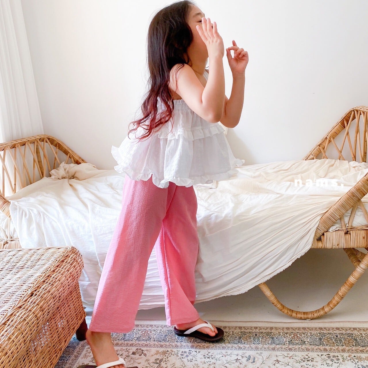 とてもゆったりシルエット、生地も薄くて柔らかい、涼しいカラーパンツです!