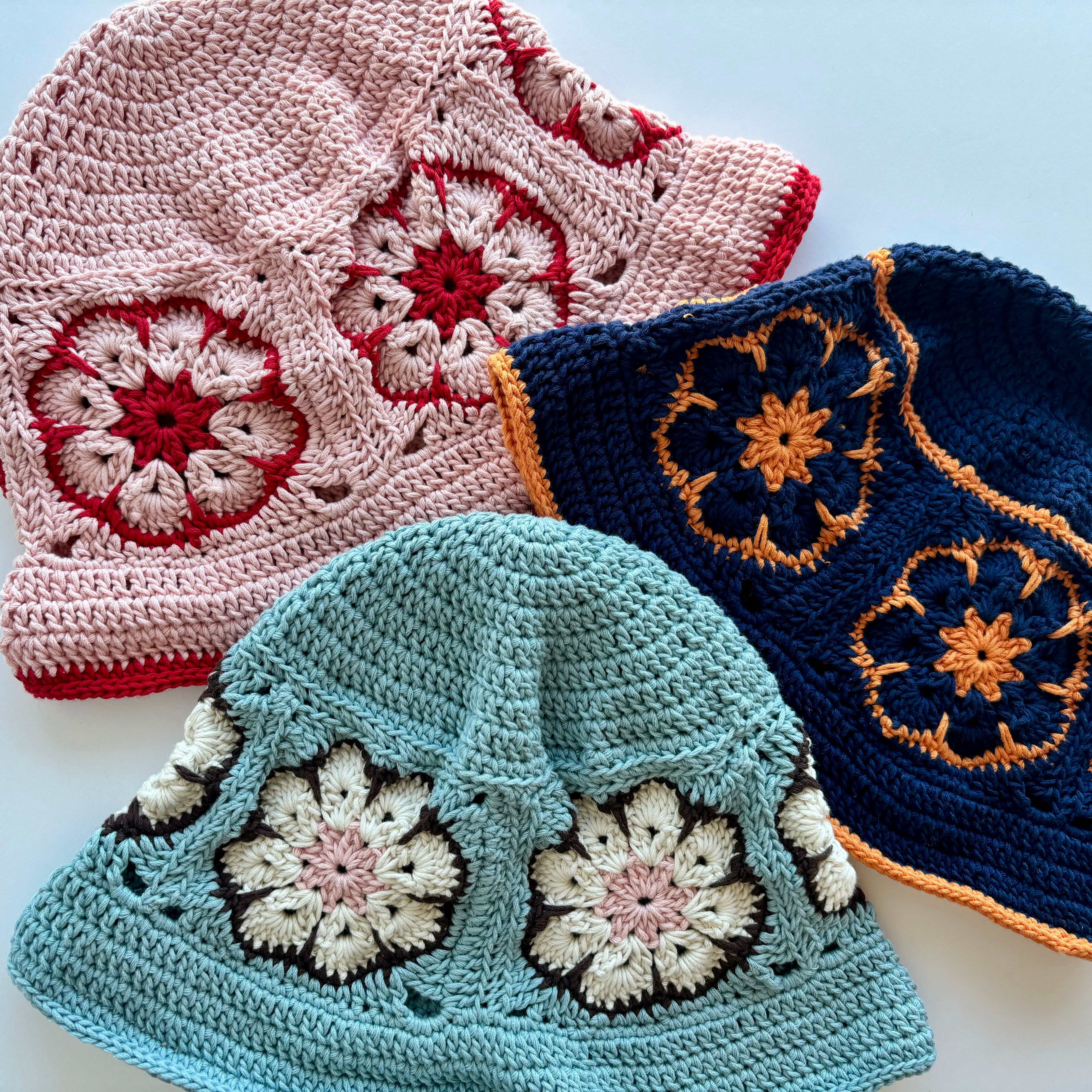 コットン100%を使用している アフリカンフラワー柄の鍵編み帽子!